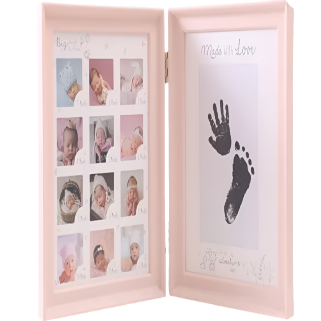 Fotolijst met hand /voetafdruk roze 12 maanden