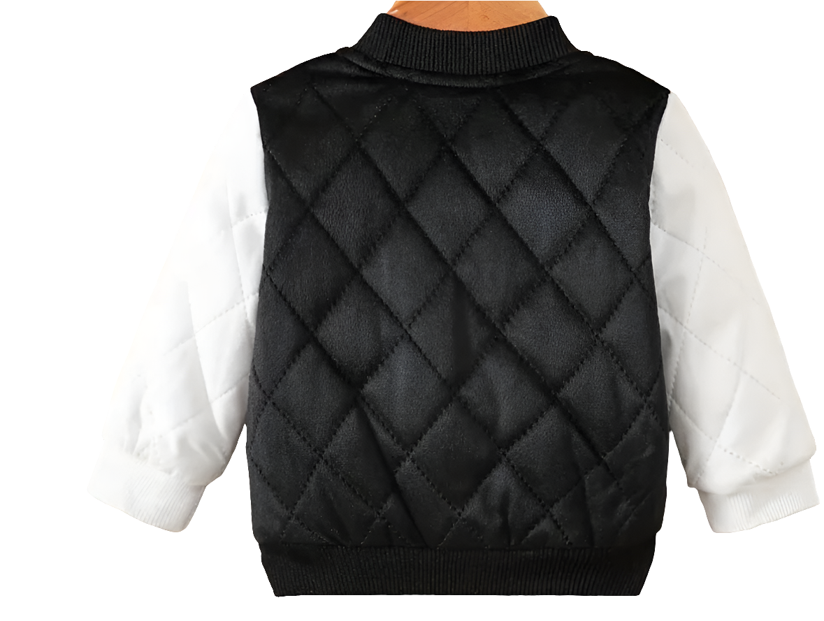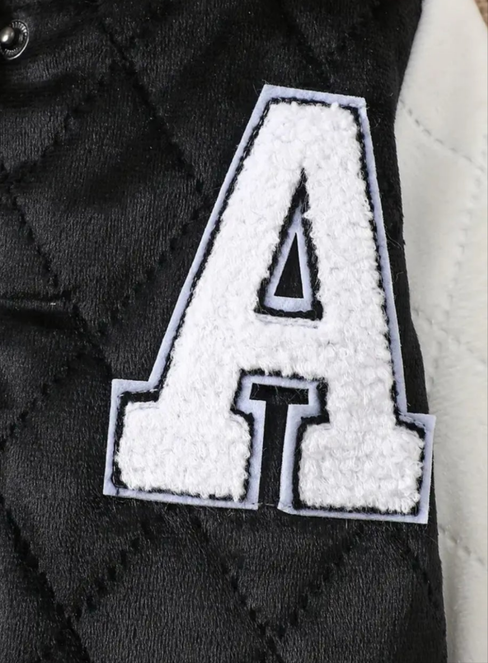 Chaqueta de béisbol acolchada de terciopelo negro y beige