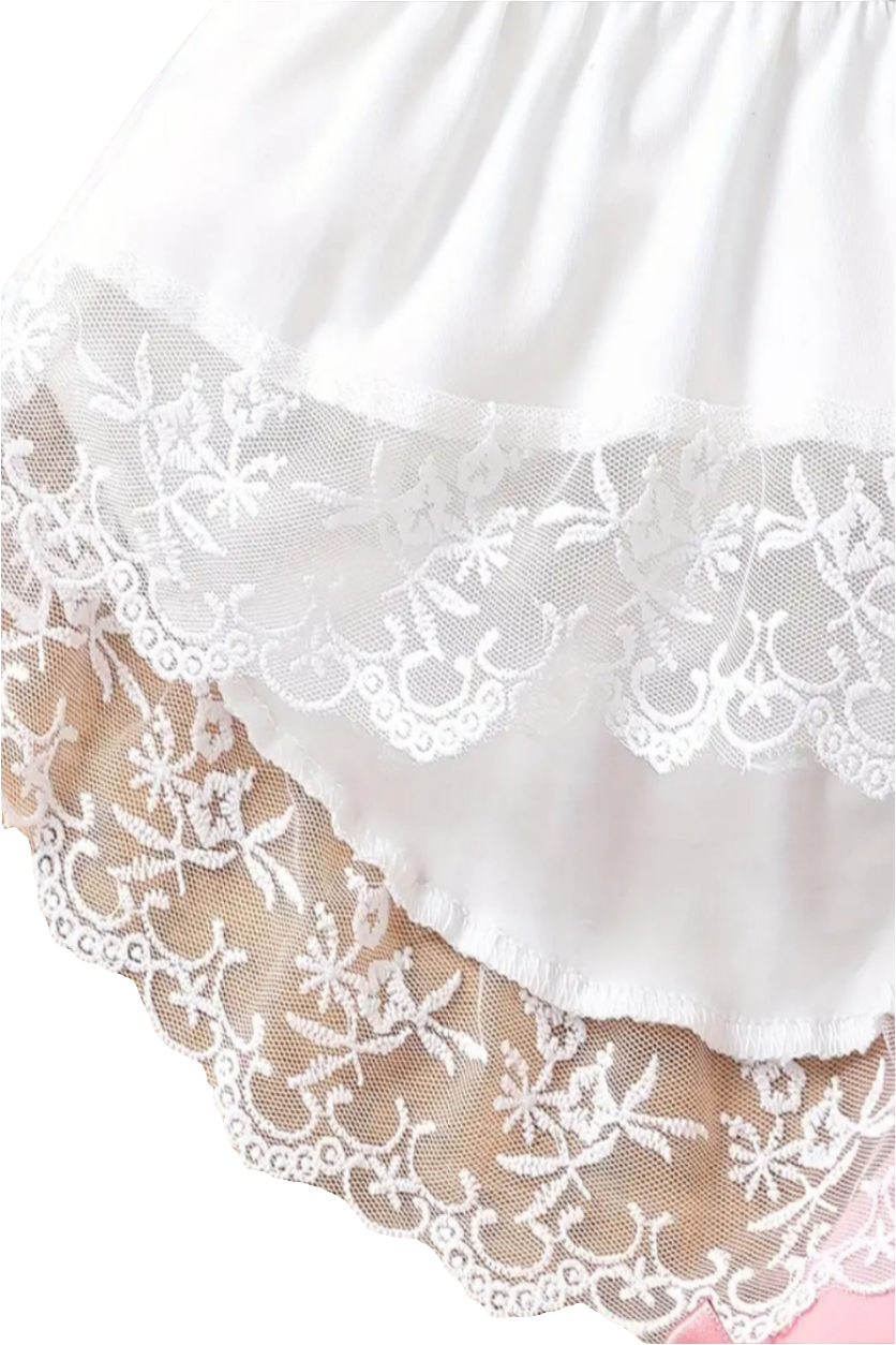 Blouse wit met kant en roze legging met kant (te combineren met de broderie schoentjes)