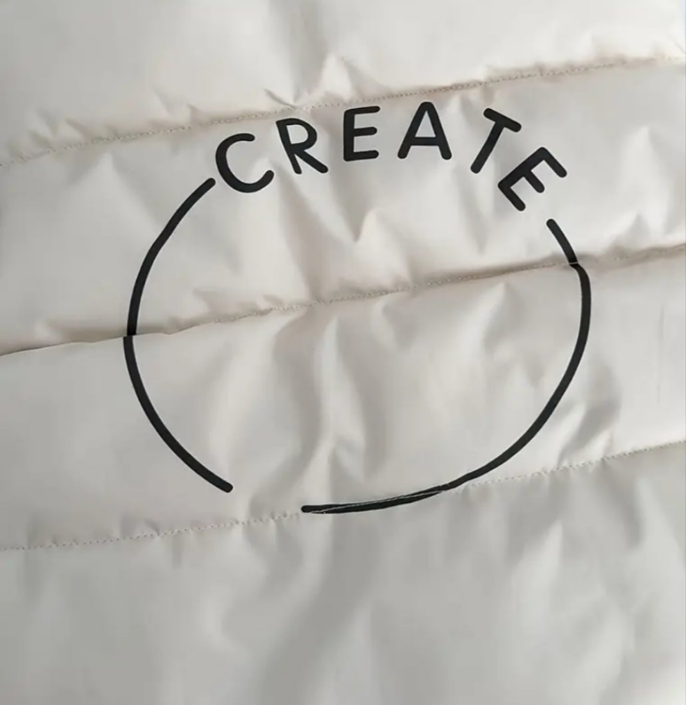 Stoere en warme bodywarmer. Op de achterzijde staat Create. Leuk om over een jeansjack te dragen/ Cool and warm bodywarmer. It says "Create" on the back. Great to wear over a denim jacket./Chaleco fresco y cálido. Dice "Create" en la espalda. Ideal para usar sobre una chaqueta vaquera.