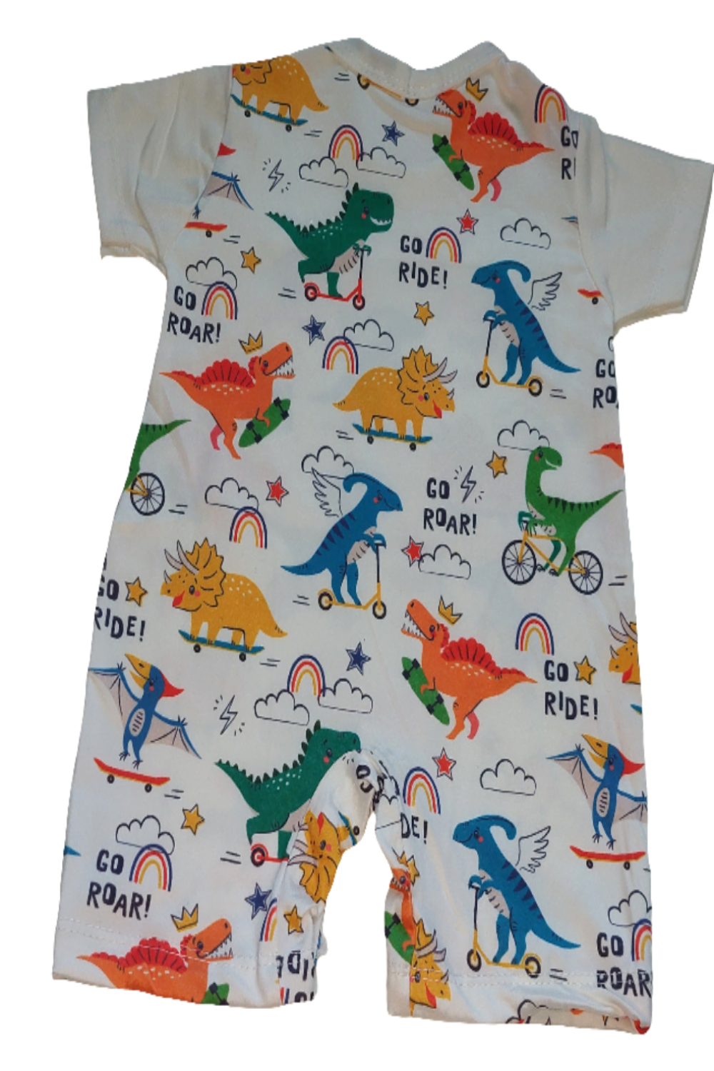 Boxpak wit met dino en regenboog/White romper with dino and rainbow/Mono blanco con dinosaurio y arcoíris