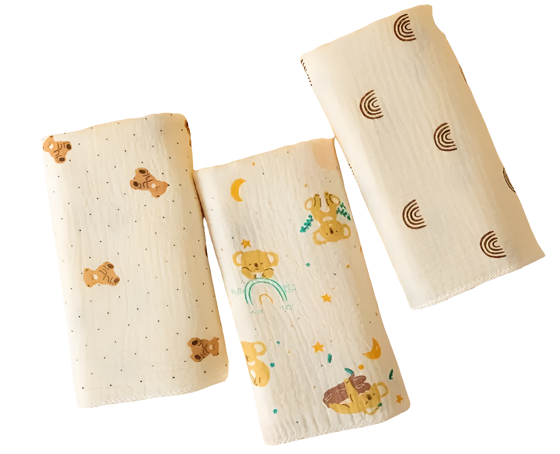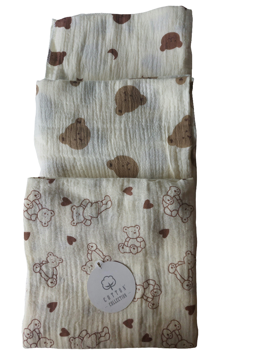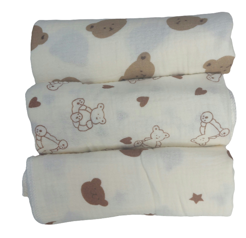 Set hydrofiele doeken 3 stuks 80 cm met beertjes, regenboog of hartjes en bloemen / Set of 3 hydrophilic cloths 80 cm with bears, rainbow or hearts and flowers / Juego de 3 paños hidrófilos de 80 cm con ositos, arcoíris o corazones y flores