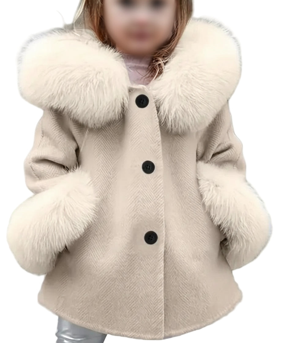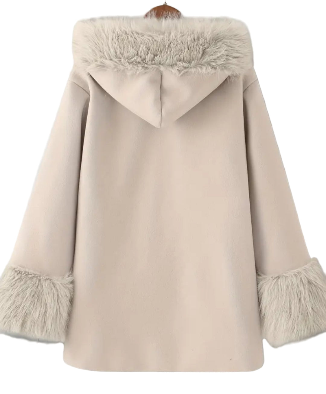 Jasje creme met capuchon met bontrand en bont langs de mouwen