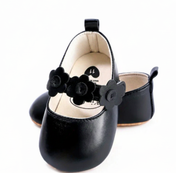 Jurk zwart met beige bloemen en strik ( te combineren met de zwarte ballerina's)