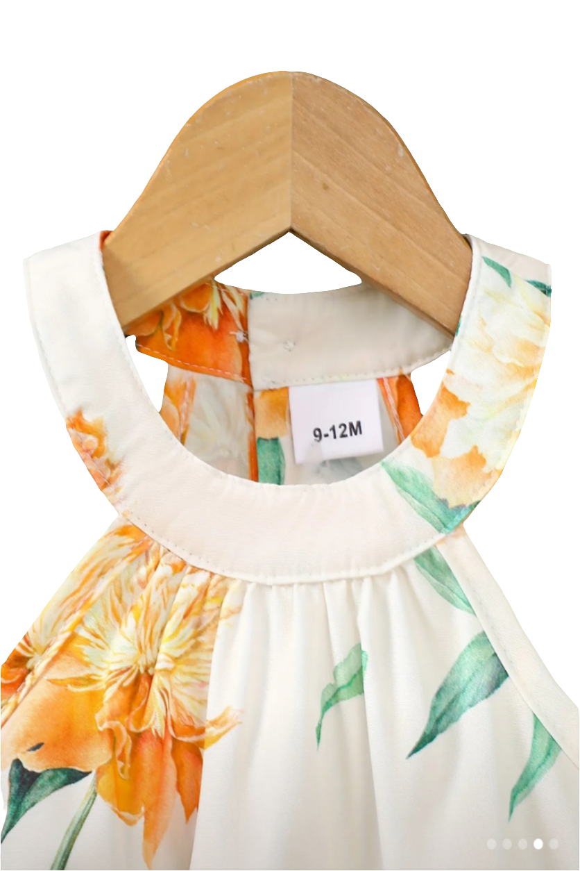 Jurkje wit met bladprint geel en lichtgroen ( te combineren met de gele schoentjes)
