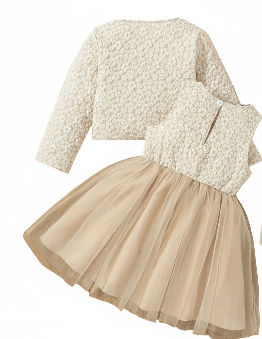 Kerst feest jurkje bovenlijf in jacquard patroon en bijpassend jasje en tule rok