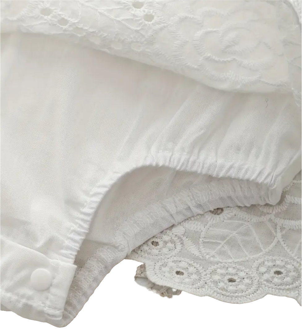 Broderie/kanten jurkje met romper ( Leuk met de broderie ballerina's)