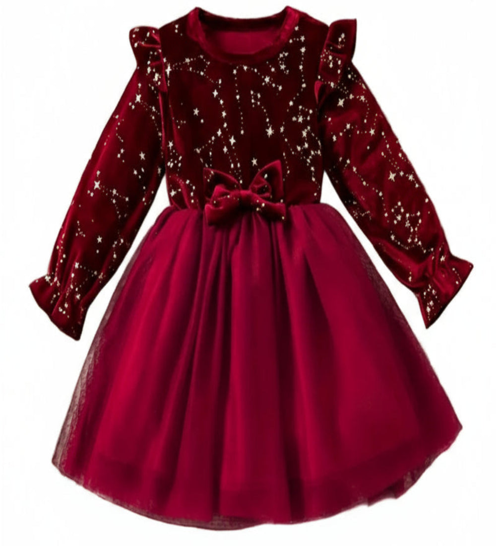 Kerstjurk wijnrood met strik