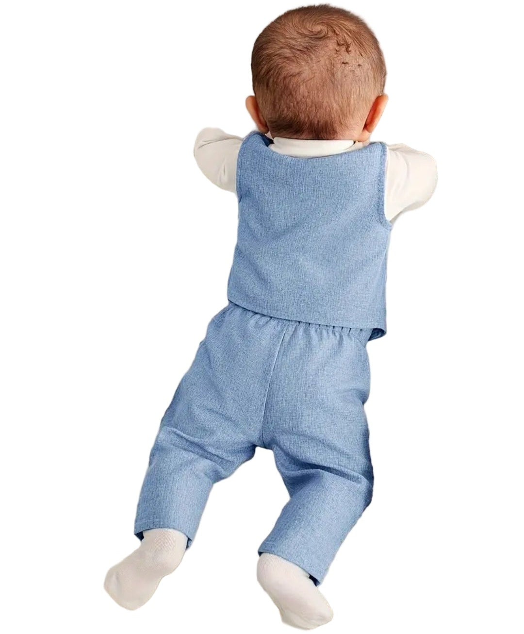Kerstpak beige of lichtblauw: gilet,blouse en broek