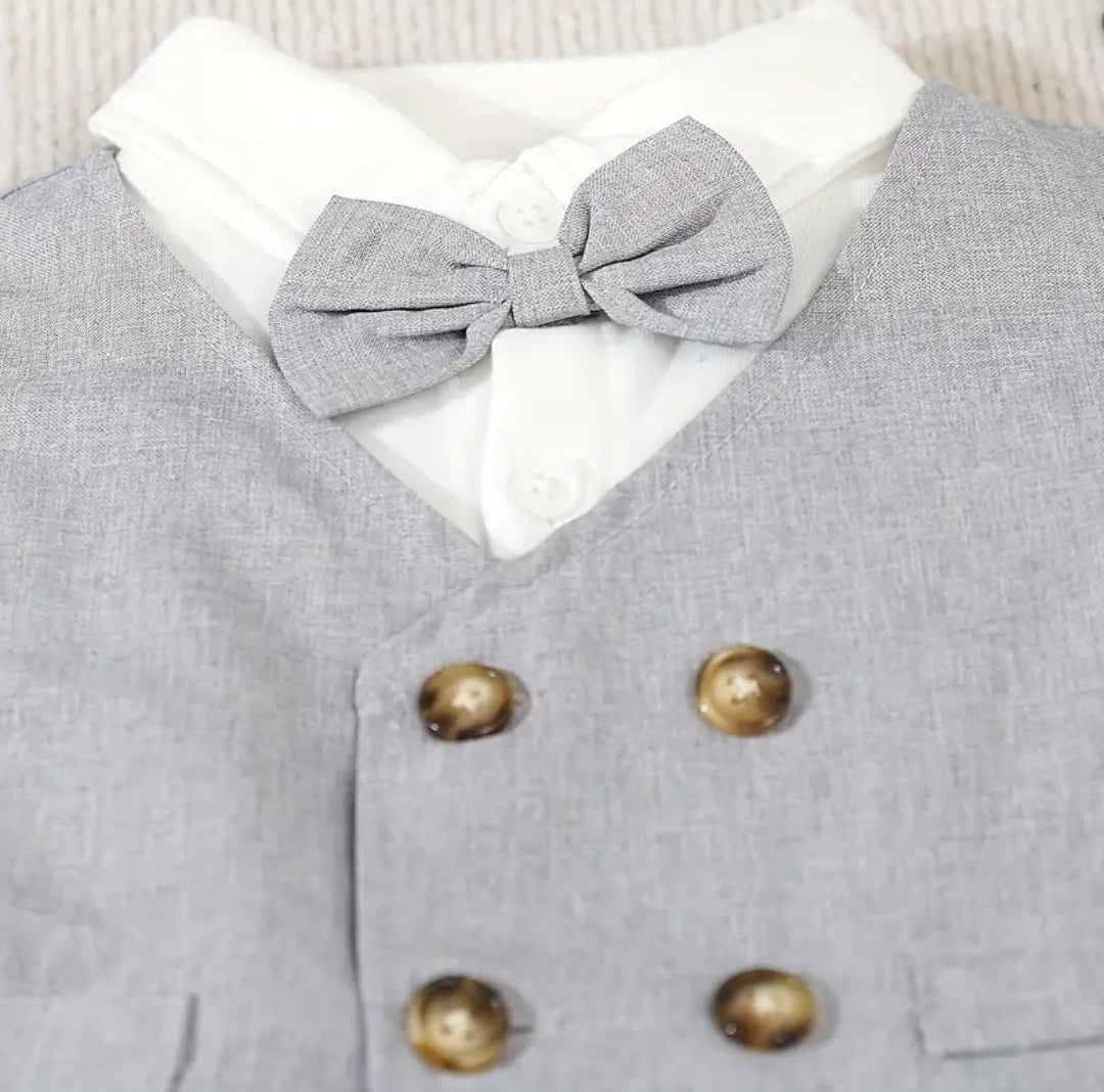 Kerstpak: kaki ,beige of marineblauw gilet met pantalon en strik met overhemd