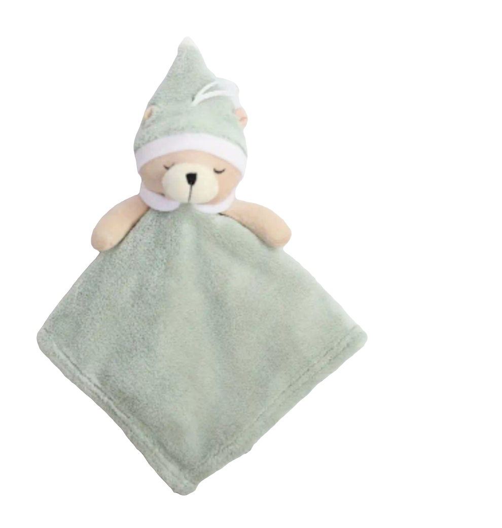 Een knuffel en spuugdoekje ineen. Handig om aan de kinderwagen of autostoel te hangen./A cuddly toy and pacifier cloth all in one. Handy for hanging on the stroller or car seat./Un peluche y un chupete, todo en uno. Práctico para colgar en el cochecito o la sillita del coche.