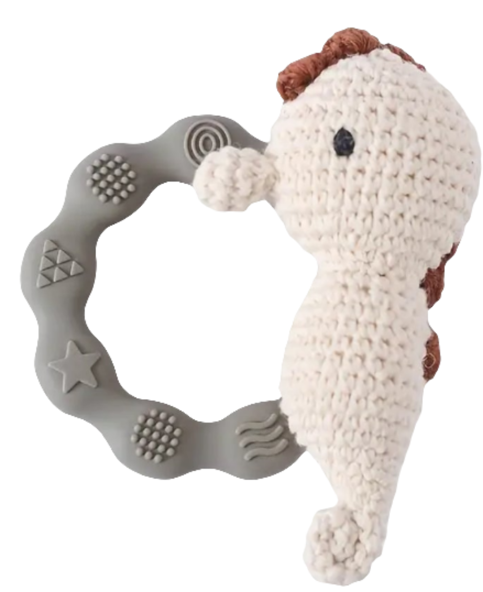 Bijtring schilpad of zeepaardje van handgemaakt gehaakt katoen