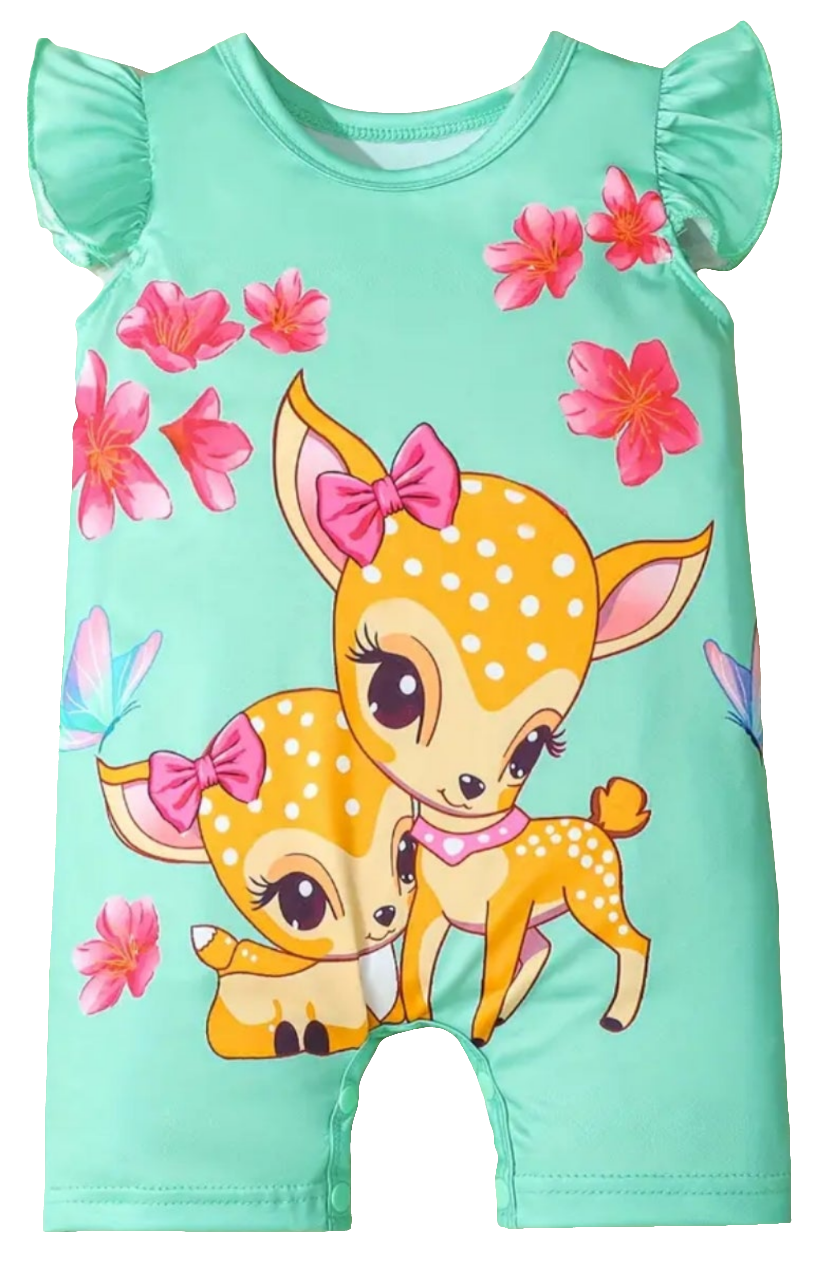 Boxpak met 2 lieve hertjes. Ook verkrijgbaar in mintgroen/Onesie with two cute deer. Also available in mint green./Mono con dos lindos ciervos. También disponible en verde menta.