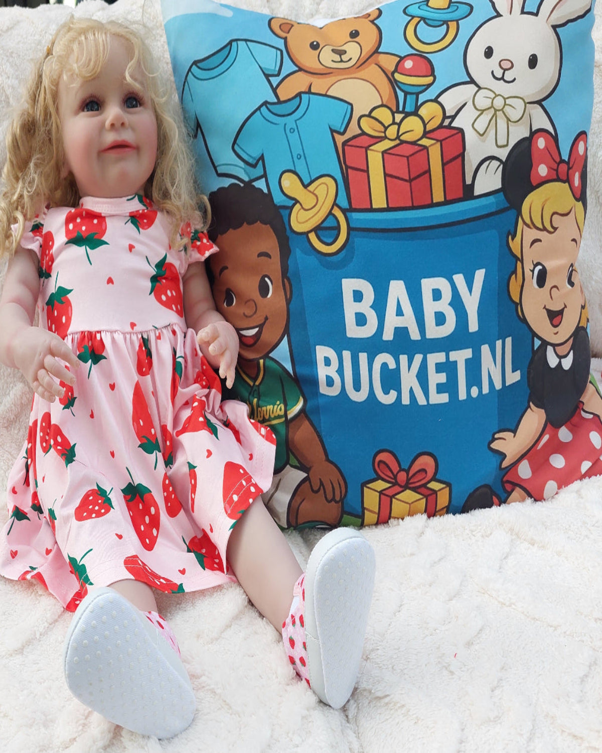 roze canvas instapper met aardbeien( ook als set verkrijgbaar met jurkje aardbei)