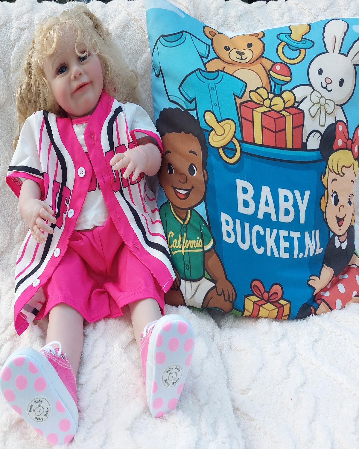 cheerleader set:Shirt , short en topje. " California" Leuk te combineren met de roze gympen.