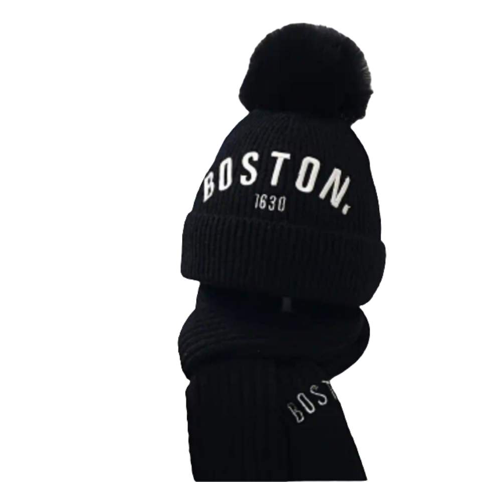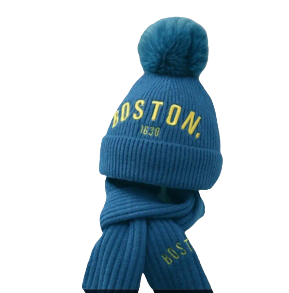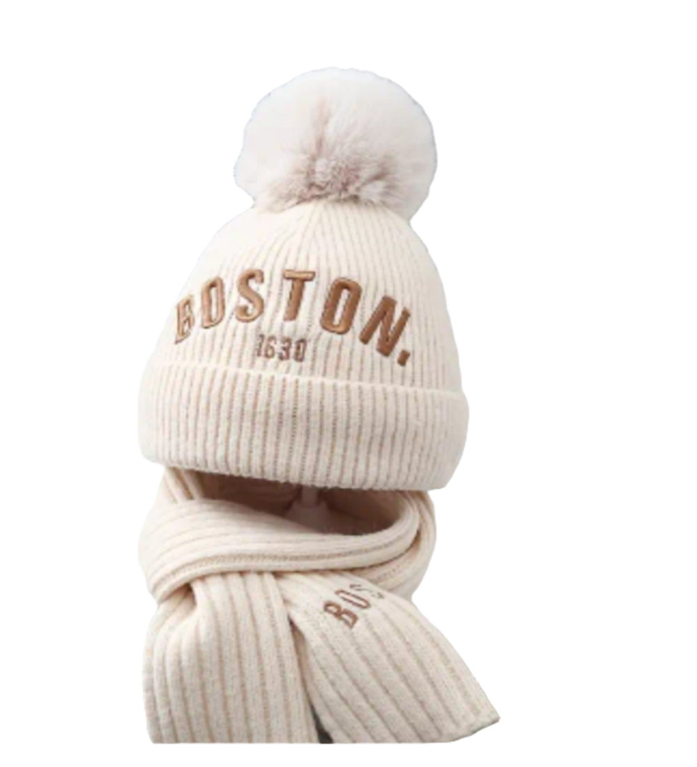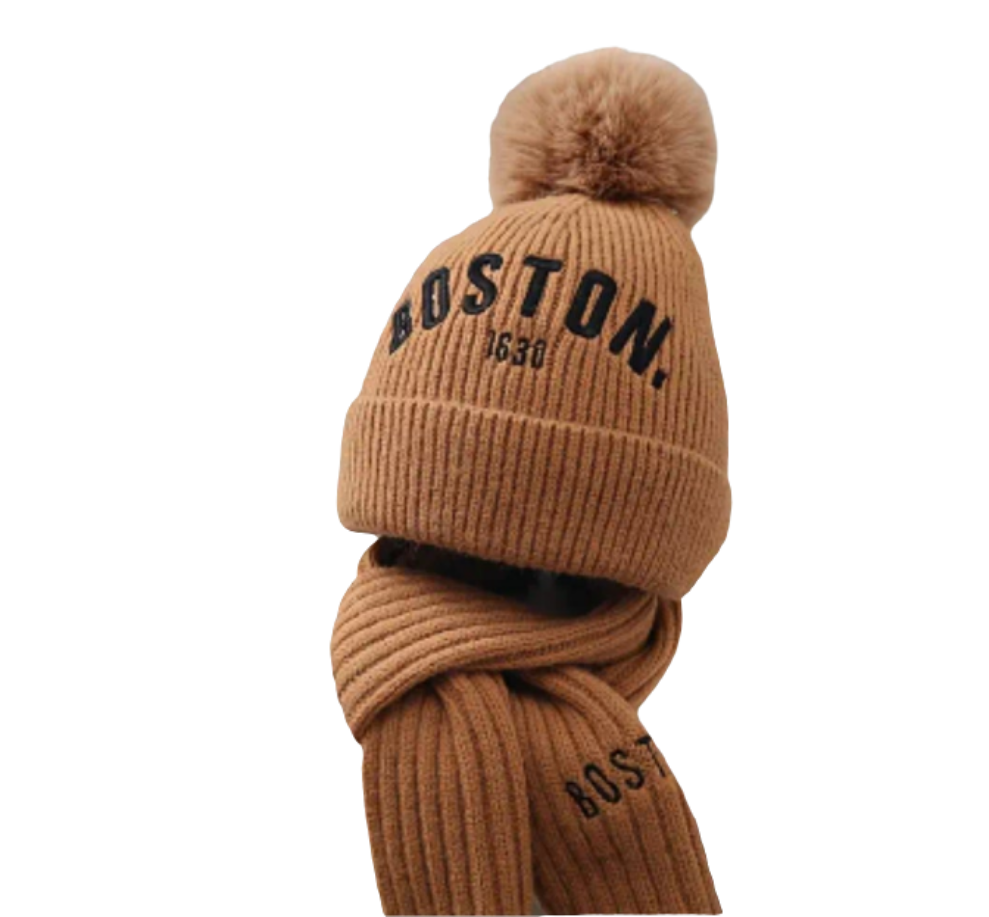 Gevoerde muts met pompon en bijpassende sjaal " Boston"