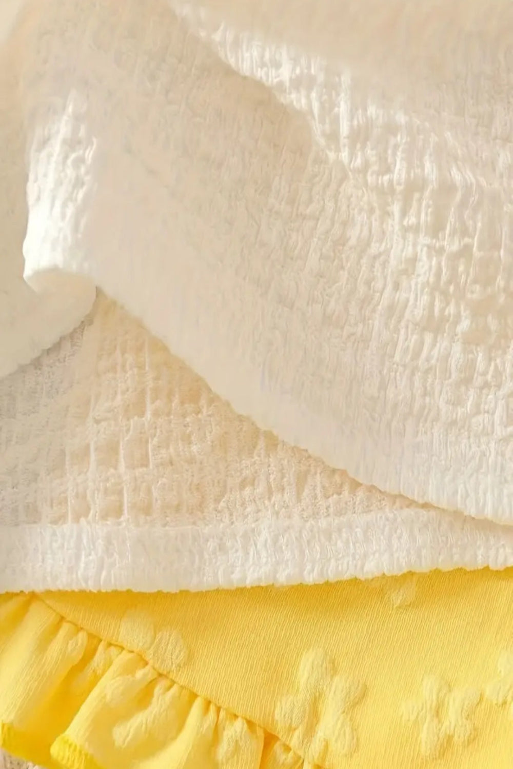 Set. Singlet wit met bloem en gele short ( leuk te combineren met witte gymp)