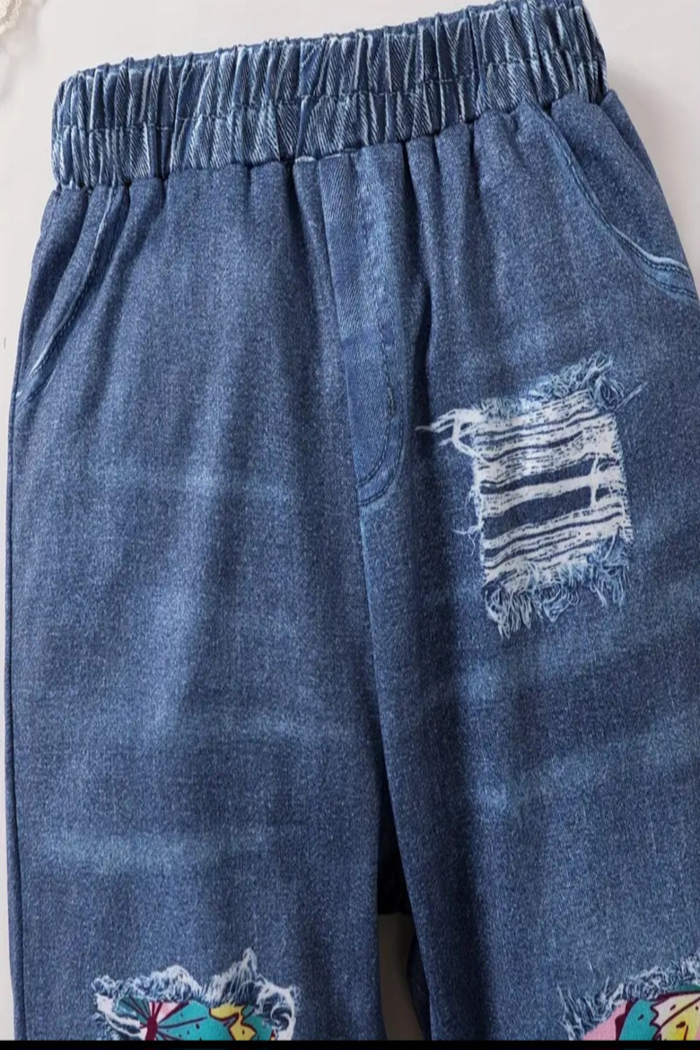 Shirt roze met vlinders en legging in denimlook ( leuk met de gympjes met glitters)