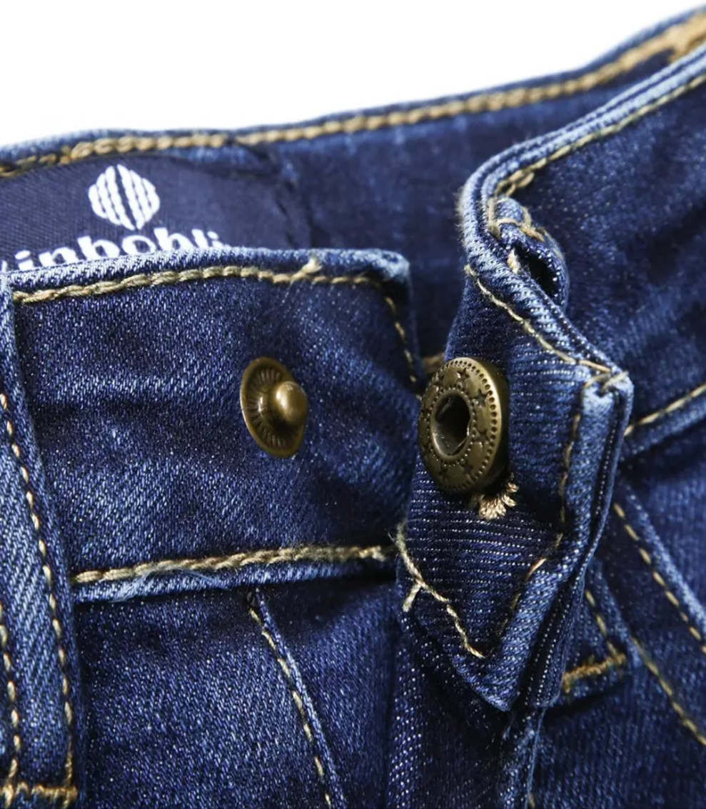 Blue stone denim jeans met achterzakken met sierstiksels. Aan de voorzijde opent de broek met een drukknoop. De pijpen zijn heavy used look./ Bluestone denim jeans with decorative stitching on the back pockets. The front opens with a snap button. The legs have a heavy, distressed look./Vaqueros de mezclilla color piedra azul con costuras decorativas en los bolsillos traseros. La parte delantera se abre con un botón a presión. Las perneras tienen un aspecto desgastado y pesado.